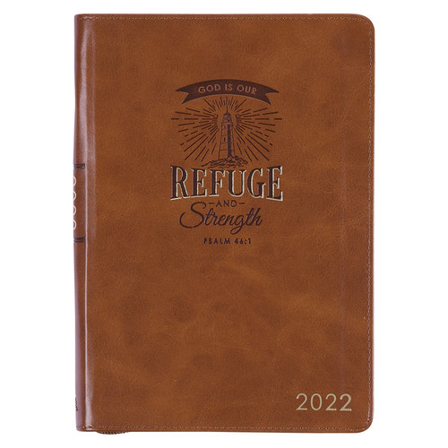 Faithfully go about your days knowing that God is your strength when you plan using the Refuge and Strength Brown Faux Leather 2022 Zippered Executive Planner. Let the encouraging reminder printed on this 12-month planner steer you through the new year with confidence.